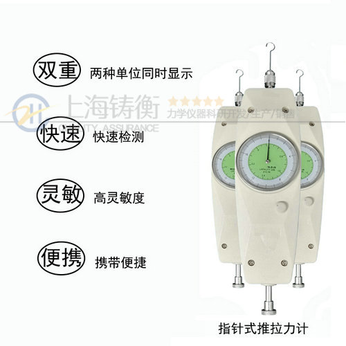 該指針式推拉力計現廣泛應用于電子、高低壓電器、五金制鎖、汽車配件、粘膠化工、打火機及點火裝置、制筆、輕工、建筑、紡織、機械等行業和科研機構作拉壓負荷、插拔力、破壞性試驗測試等,是老式測力計的替代產品。